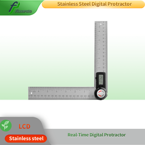 This angle finder combines a stainless steel ruler and protractor for precise inside and outside angle measurements. It features a locking screw for easy angle adjustments, laser-etched measurements for durability, and high accuracy of ±0.3 degrees. Powered by a CR2032 battery, it’s perfect for woodworking, crown molding, and more.