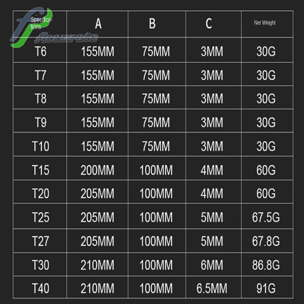 | Size | T5,T6,T7,T8,T10,T15,T20,T25,T30,T40 |