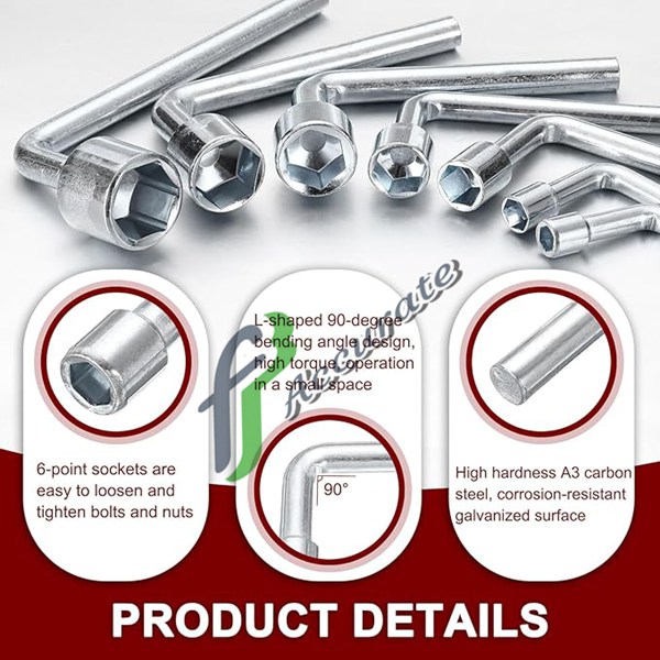 This L-shaped angled open hex 6-point socket wrench (single-ended) is made from A3 carbon steel with a nickel-plated finish, offering high hardness, wear resistance, and corrosion protection. The L-shaped design provides easy torque application and a secure grip, while the 6-point socket ensures a tight fit on fasteners. Ideal for home, auto, industrial repairs, and DIY projects, this durable wrench reaches tight spaces and provides stable, reliable performance.